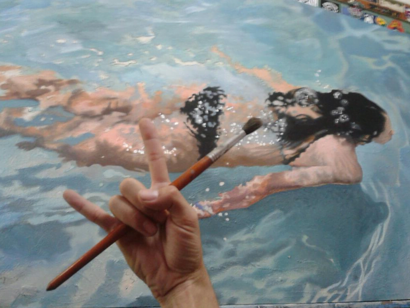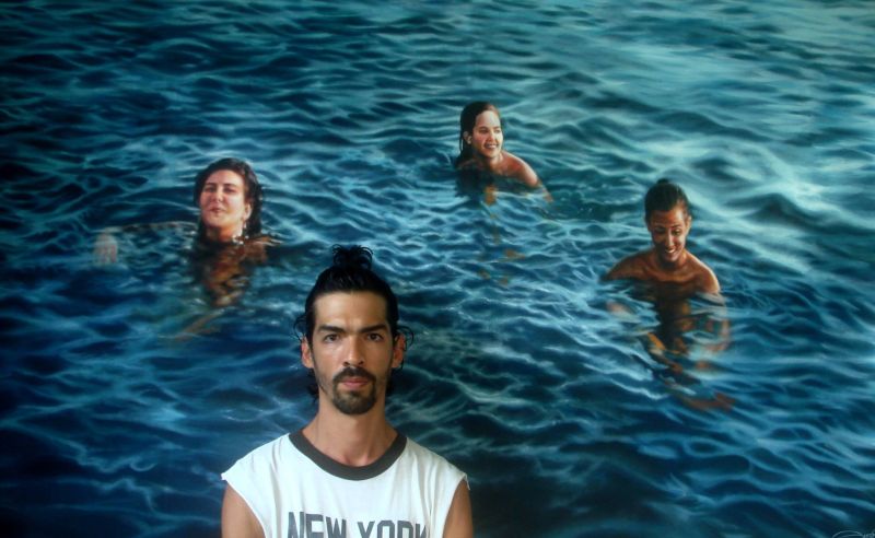 Él retrata personas en distintas situaciones, tal vez las más impactantes son las de personas en el agua, nadando, flotando o mojándose en un día de calor que son impresionantemente realistas.