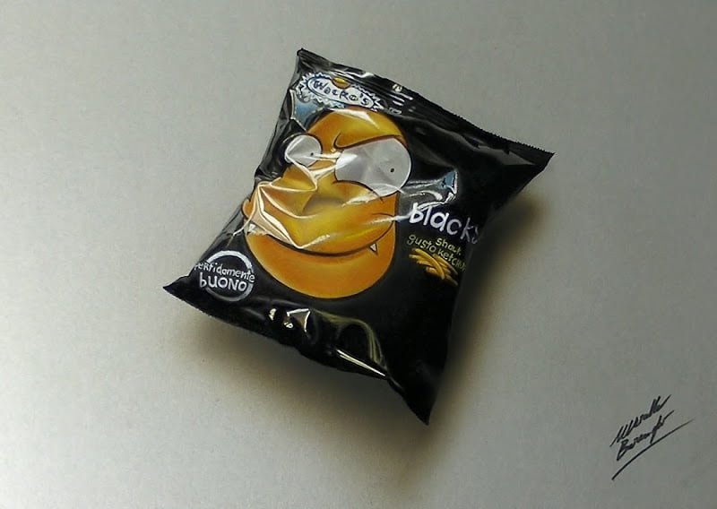 Pues te presentamos a Marcello Barenghi, este artista italiano, con sede en Milán cuando dibuja, realiza las obras teniendo en cuenta hasta el más minimo detalle. Su sombreado y efectos de luz convierte a los objetos que dibuja en objetos tridimensionales casi reales. Genera tal nivel de realismo que estamos seguros que no podrías diferenciar entre un dibujo o una fotografía.