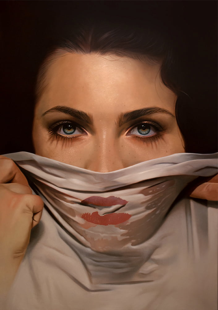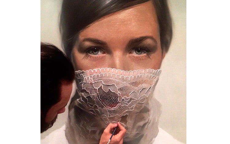 La intensificación de la mirada y la expresión facial son dos de las técnicas del hiperrealismo que utiliza el pintor para destacar sus pinturas que parecen casi fotografías si se miran de lejos. Sin embargo, cuando se observan de cerca sí se pueden apreciar las sombras y matices diferentes que la componen.