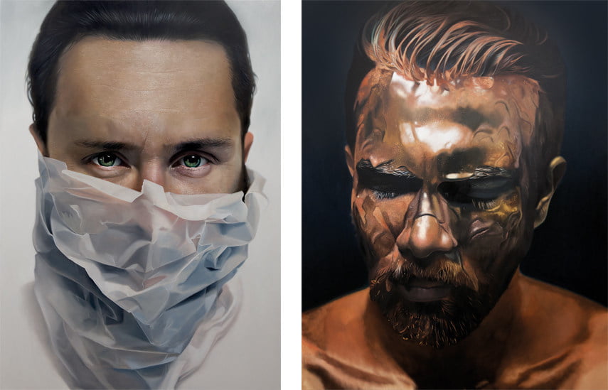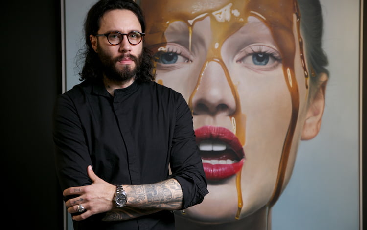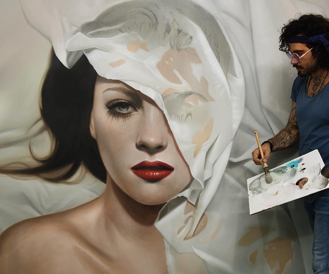 Inspirado por Caravaggio, Dali y por HR Giger, le pudo el hiperrealismo y comenzó a pintar retratos de hombres y mujeres, jóvenes y mayores, en lienzos de gran tamaño, unos 2 metros de altura cada uno.